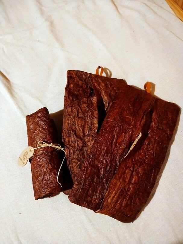 村の暮らしの文化 柿渋と和紙を合わせて 革のような風合いに仕立てた