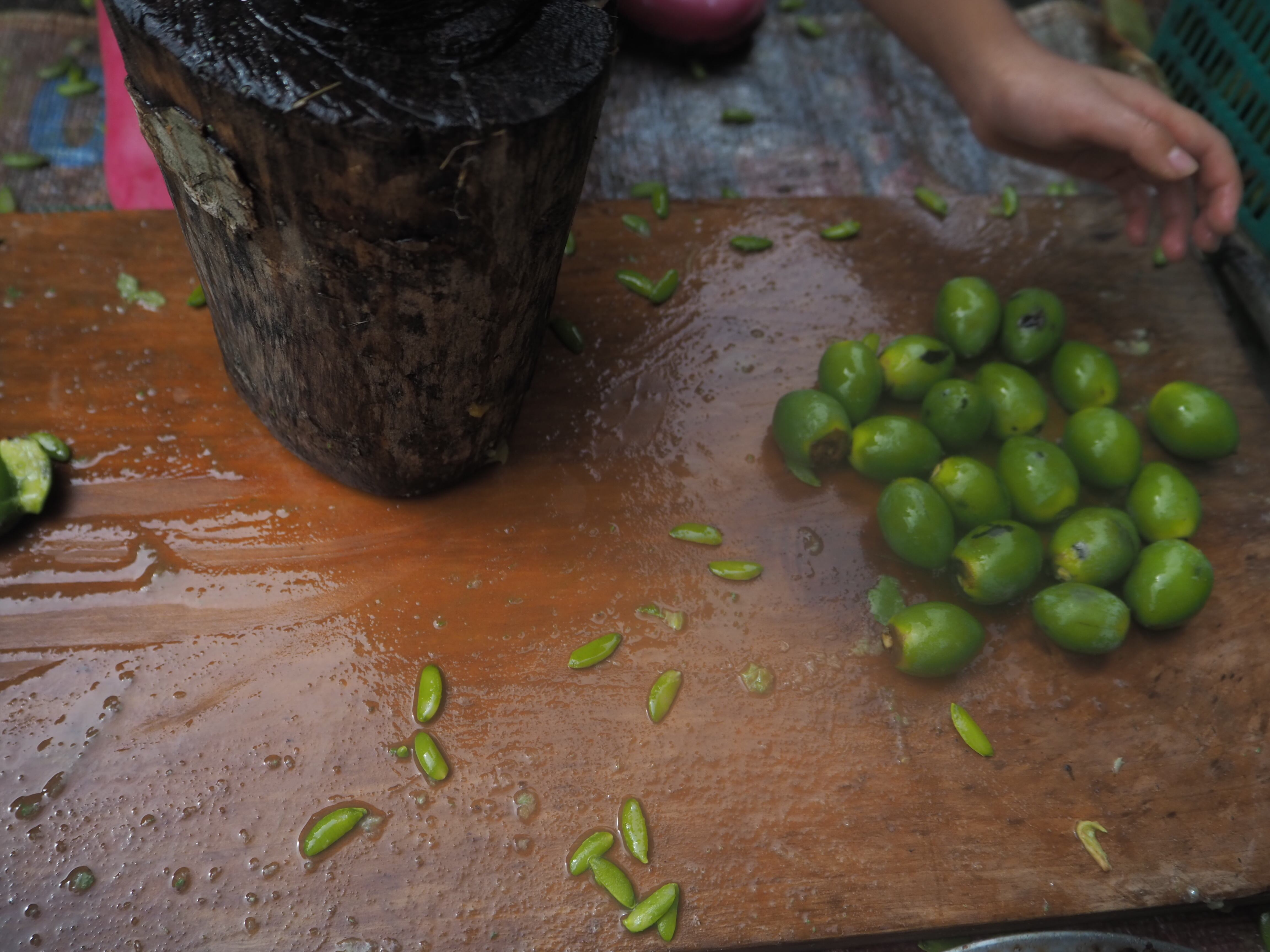 木綿糸でひとつひとつ縫い合わせ、壁にもかけられるように、